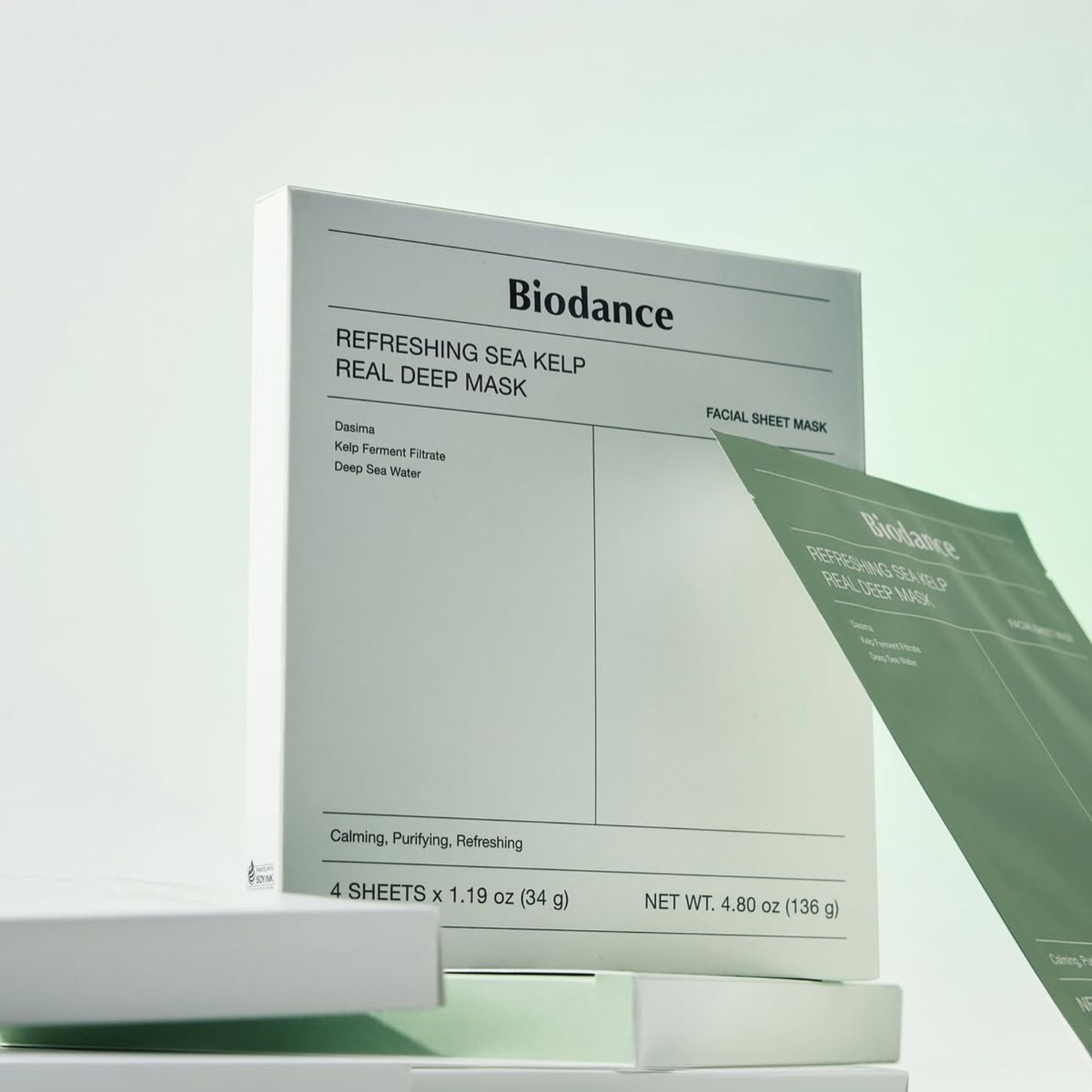 Biodance Refreshing Sea Kelp Real Deep Mask - освіжаюча гідрогелева маска з морськими водоростями, для глибокого відновлення і зволоження шкіри. Маска збагачена натуральними ферментованими морськими водоростями, що мають потужні антиоксидантні властивості. Швидко заспокоює і оживляє шкіру, роблячи її оксамитовою і готуючи до нанесення макіяжу. Маска допомагає зняти стрес, зменшити пошкодження, запобігає появі недосконалостей і захищає шкіру від зовнішніх впливів. Завдяки високій концентрації антиоксидантів і зволожувальних компонентів, вона зменшує зморшки та сухість, надаючи шкірі молодого та сяючого вигляду. Маска ідеально підходить для людей, які страждають від подразнень, почервоніння і стоншування шкіри, а також потребують інтенсивного відновлення і зволоження. Гідрогелева маска стає прозорою в міру того, як активні компоненти поглинаються шкірою. Маску необхідно тримати на шкірі мінімум 3-4 години. Для найкращого результату протримайте маску всю ніч! Завдяки особливій формулі гідрогелю маска чудово прил
