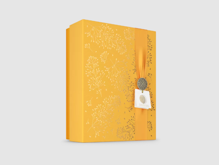 Подарункова коробка стане ідеальним подарунком для друга чи члена родини або для того, щоб побалувати себе! Колекція Ritual of Mehr була створена, щоб зарядити енергією тіло, розум і душу. Наповнений солодким апельсиновим і кедровим деревом, кожен продукт у цій колекції для дому та тіла покращує настрій і наповнює серце щастям. Містить пінний гель для душу, крем для тіла, ароматичну свічку та мініароматизовані палички. Багаторазовій подарунковій коробці класу люкс можна дати друге життя, зберігаючи в ній фотографії, листи чи інші предмети.