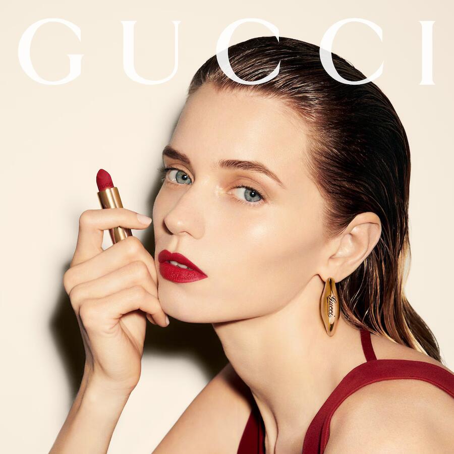 Помада Gucci Beauty Rouge à Lèvres Matte Lipstick поєднує насичений колір, оксамитовий матовий фініш і приємні відчуття на губах — без пересушування і без розмазування. Завдяки шовковистій текстурі й насиченим пігментам вона забезпечує максимальний ступінь покриття вже з першого шару. На губах помада відчувається легко, але водночас зберігає бездоганну стійкість упродовж цілого дня.