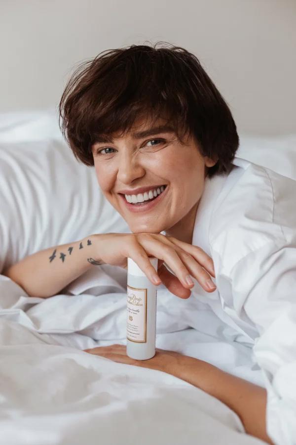 Візьміть невелику кількість тоніку на долоні та розподіліть по всьому обличчу, шиї та зоні декольте.
