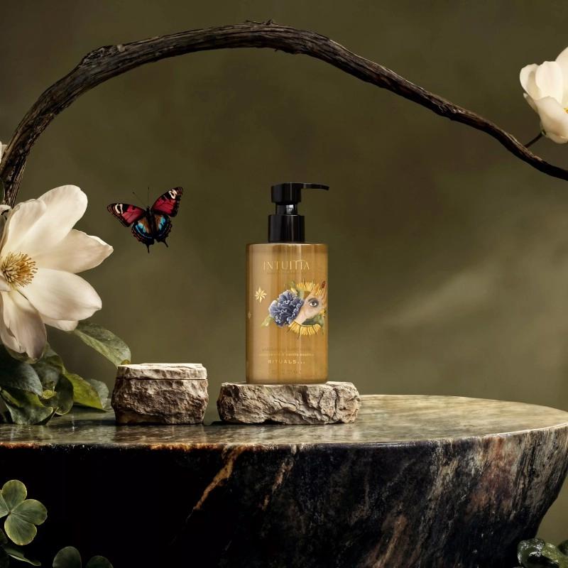 Rituals Intuitia Exfoliating Hand Wash — це вишуканий засіб для рук, який поєднує очищення та відлущування в одному кроці. Його унікальна формула на 95% складається з натуральних інгредієнтів та збагачена м'якими пілінг-компонентами, такими як частинки діоксиду кремнію та натуральна кориця. Завдяки цьому засіб делікатно видаляє відмерлі клітини шкіри, стимулює процеси оновлення та повертає рукам шовковисту гладкість. При цьому воно не пересушує шкіру та підтримує її природний баланс, залишаючи відчуття свіжості, доглянутості та комфорту після кожного застосування.